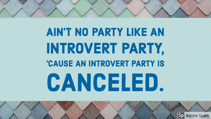 Maybe these aren’t the greatest strategies. Maybe you’re the kind of person who actually loves to spend every waking hour socializing. But I thought the article was written just for me. I’m an introvert, and my favorite advice for party planning is: “Ain’t no party like an introvert party, ‘cause an introvert party is…canceled.”